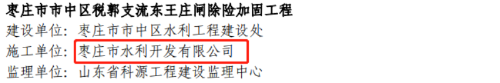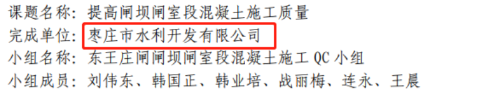 2021年4月19日,山東省水利廳網站公示了全省重點水利工程“爭進度、賽質量、比擔當”決勝攻堅勞動競賽擬獲獎名單。棗莊市水利開發有限公司榮獲先進集體獎項(嶧城區陰平沙河前張閘除險加固工程項目經理部)、文明工地獎項3個(棗莊市市中區稅郭支流東王莊閘除險加固工程、山東省淮河流域重點平原洼地南四湖片治理工程、山東省湖東滯洪區建設工程)、QC小組成果獎項(東王莊閘閘壩閘室段混凝土施工QC小組)、優秀個人獎項(高級工程師連永)。