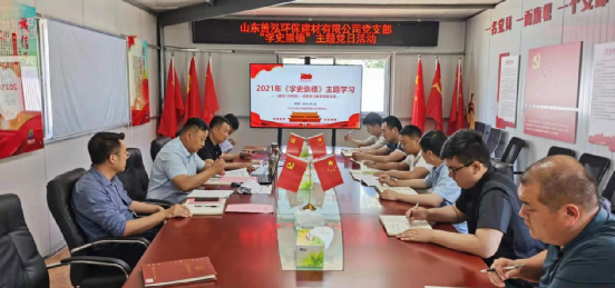 為深入開展黨史學習教育活動,全面抓好貫徹落實,根據上級黨委通知要求,5月28日,山東善泓環保建材有限公司黨支部開展了“學史崇德”主題黨日活動,引導全體黨員“立政德、明大德、守公德、嚴私德”,賡續共產黨人精神血脈,永葆對黨的忠誠之心、對人民的赤子之心,永葆黨的先進性和純潔性。