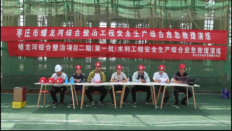 為進(jìn)一步檢驗(yàn)蟠龍河綜合整治項(xiàng)目中應(yīng)急預(yù)案的可行性和可操作性,同時(shí)起到鍛煉隊(duì)伍、磨合機(jī)制及安全教育的目的。6月5日在山家林橡膠壩管理房處,由棗莊坤澤置地開(kāi)發(fā)有限公司組織開(kāi)展安全生產(chǎn)綜合應(yīng)急演練活動(dòng)。山東鴻禹工程監(jiān)理咨詢有限公司、青島瑞源工程集團(tuán)有限公司、臨沂市水利工程處、棗莊市水利開(kāi)發(fā)有限公司項(xiàng)目負(fù)責(zé)人及安全員共計(jì)46人參加本次演練,邀請(qǐng)了棗莊市蟠龍河建設(shè)管理服務(wù)中心人員進(jìn)行觀摩。
