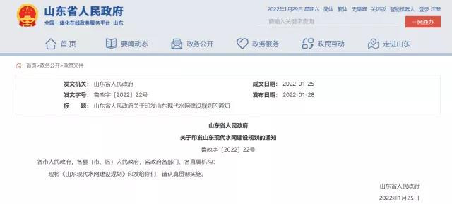 山東省人民政府辦公廳近日印發《山東現代水網建設規劃》,《規劃》提出將以全面提升水安全保障能力為目標,以完善水資源優化配置體系、防洪減災體系、水生態保護修復體系為重點,統籌存量和增量,加強互聯互通,加快構建“系統完備、安全可靠、集約高效、綠色智能、循環通暢、調控有序”的山東現代水網。