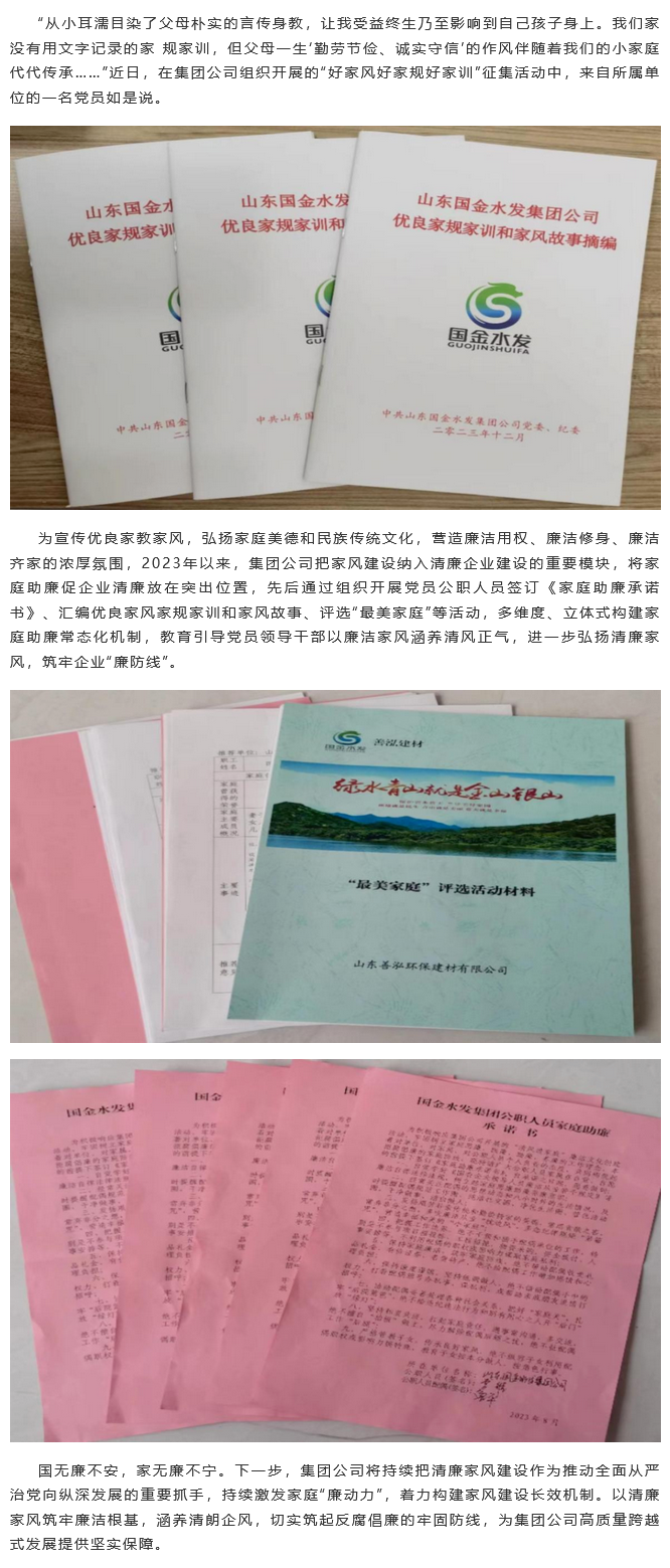 弘揚清廉家風 筑牢廉潔防線丨集團公司組織開展“好家風好家規好家訓”征集活動